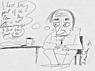 Tom Peters showcases the new dispensation in a profile of Johnsonville Foods, a sausage company in Wisconsin. If you guessed that this business has something to do with making meat a little easier to swallow, try again. At Johnsonville, self-actualization is Job One. “We’re here to give [workers] an opportunity to achieve whatever it is they want to achieve in life,” says CEO Ralph Stayer, who adds that “watching people grow is my number one joy.” Employees (excuse me, “members”) are organized into self-managing work teams that control virtually every aspect of the business; the company even helps pay for continuing education. “Look, anything you learn means you’re using your head more,” says one line-worker. “You’re engaged. And if you’re more engaged, then the chances are you’ll make a better sausage.” And make them they do: one worker even cooked up some novel sausages for a new client—in his own basement! Soaring profits, smiling faces, growing workers—and yet, is there darkness at noon? Well, Peters admits, “teammates deal harshly with any who choose to opt out of the ‘personal growth business’”—those who can’t transcend themselves through sausage products. “People who didn’t buy into it, given peer pressure, got out,” says one executive. “Some needed a little help to make the decision,” recalls another. “There were a lot on the fence, there were a lot on the wrong side of the fence. There’s a weeding process. Some drop by the wayside.” Hmm. “Harsh” peer pressure … a big-brotherly CEO … that chilling vagueness as to the fate offence-sitters … what exactly is in room 101, anyway?