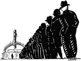 The narrator’s desolate inner monologue pings from “If I could just get some chippie to marry me, I bet I could get on relief,” to “The trouble with the whole works is Jews an’ Niggers. That’s why I’m down and out.” The story’s conclusion points towards the rosy-fingered Fascist dawn: the narrator is selling newspapers “for [Huey] Long,” a better job than giving out prayer books. In a few paragraphs, writing while callow and broke, Algren confounds the reader’s sympathies while nailing the unvarnished reality of the decade’s collapse and introducing giddy humor via the absurd dialogue. Already in his early work Algren was struggling both to utilize and to shed the strictures of the talky left-wing style of the day in favor of something barbed and leaner, a haunting form of proletarian satire.