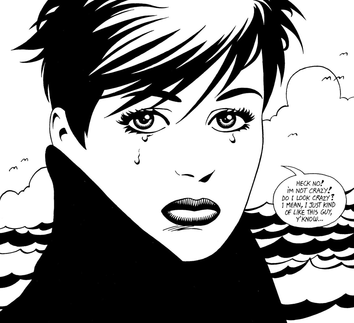 The same is true for his character drawing. From the beginning of Locas, kiddie comics like Archie and old-school Marvel artists like Jack Kirby and John Romita Sr. were obvious influences on Jaime’s crisp linework, curvy women, and eye for physical comedy. But as his narratives get more complex, he starts pulling from the illustrative style of more sophisticated artists too. There are shades of Alex Toth in the noir-inflected way he inks wide swaths of black and white. And the experiments with nine panel grids and non-sequitur page compositions feel lifted straight out of the work of auteur-ish contemporaries like Frank Miller and Dave Gibbons. Jaime’s character drawing is so unfussy and (at first glance) effortless—looking equally good zoomed into a single panel or taken in as a two-page magazine spread—that his skill obscures just how intentional and subtly boundary-pushing his art has become.