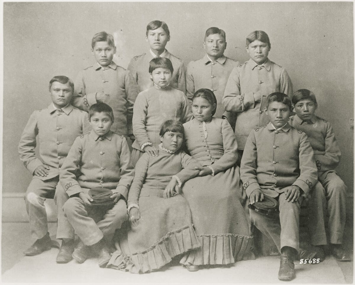 Biden’s visit wasn’t explicitly about stolen land. Instead, he focused on the federal government’s 150-year-long history of using coercive and propagandistic education against Indigenous peoples. In 1819, Congress passed the Civilization Fund Act, apportioning $10,000 annually to boarding schools run by Christian missionaries that sought to assimilate Native children. Sixty years later, the federal government began operating its own assimilative boarding schools, after Army officer Richard Henry Pratt proposed repurposing military properties for an economically efficient answer to the “Indian Problem.” Indeed, the Secretary of the Interior at the time, Carl Schurz, estimated that it would cost just $1,500 to send an Indian child to boarding school for ten years, as opposed to about $1 million to kill an Indian at war. Carlisle Indian Industrial School, the first federally run boarding school, was established in 1879 on the site of a former army barracks in Pennsylvania near the Susquehanna River. Superintendent Pratt provided the informal motto: “Kill the Indian in him, and save the man.” Children from 140 tribes, including the Pima and Maricopa, were shipped off to Carlisle during its nearly forty-year run.